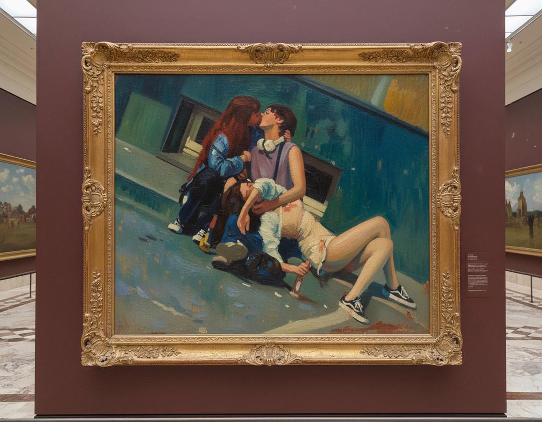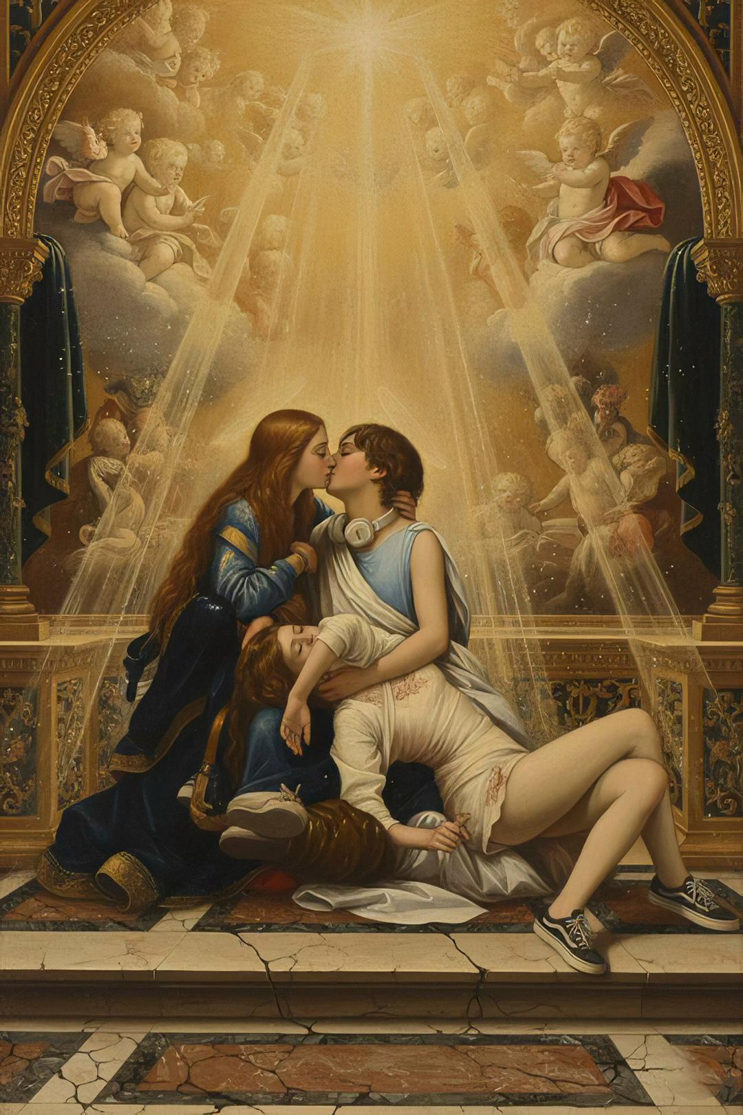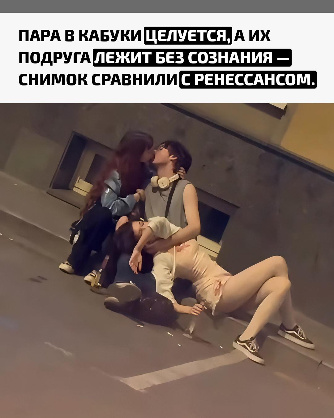 Люди сразу окрестили его "случайным ренессансом" из-за удачного сочетания поз и эмоций. Эффект усиливается контрастом между романтикой пары и драматичностью положения их подруги.