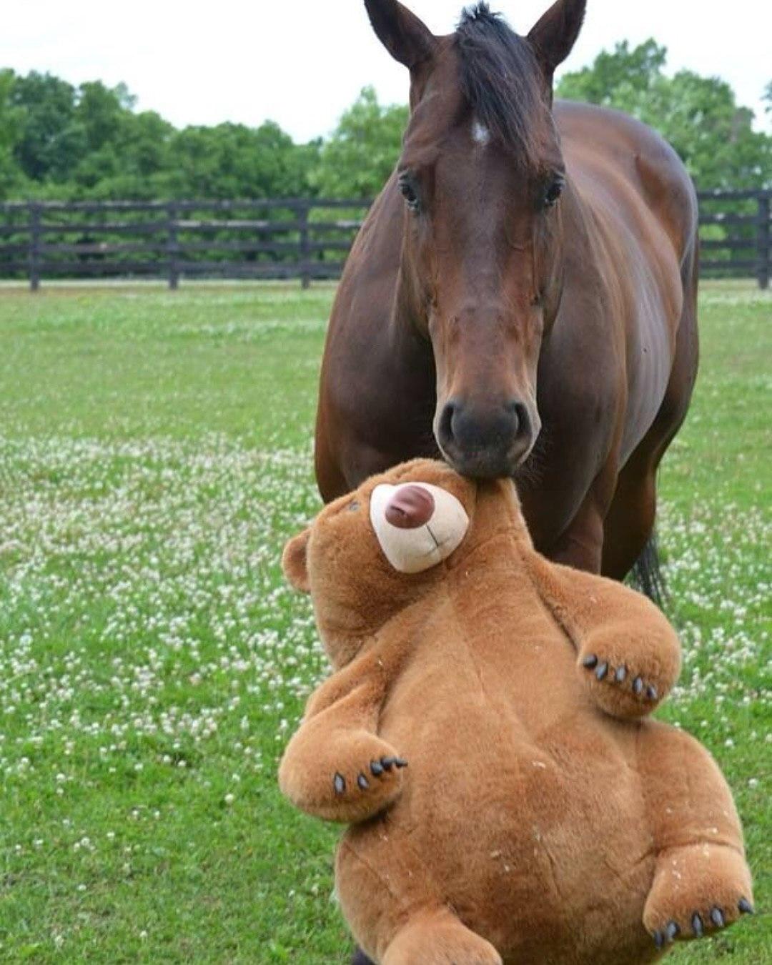 У некоторых лошадей есть свои мягкие игрушки для эмоциональной поддержки — и это не милое преувеличение, а реальная практика 🐴