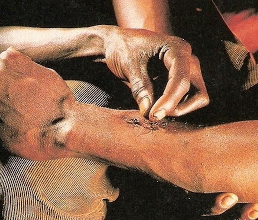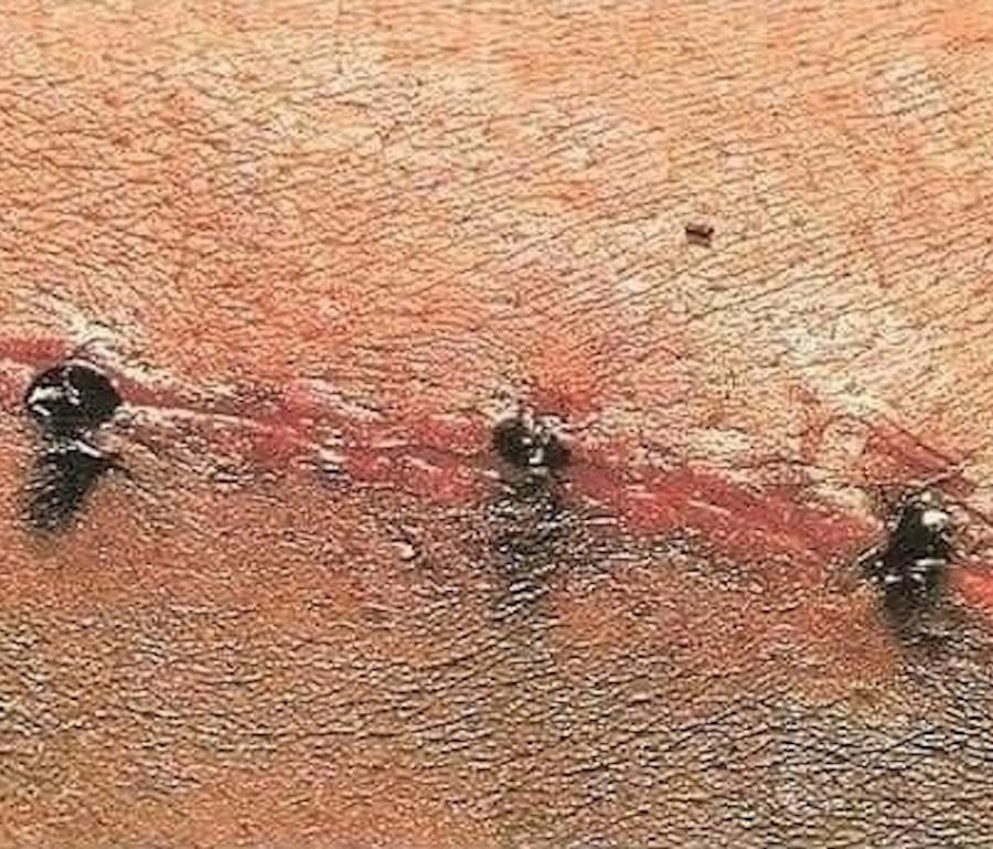 Но именно эту особенность местные жители научились использовать во благо. Муравья подносят к ране, кладут вдоль разреза, чтобы он схватил челюстями обе половины пореза. После этого тело отрывают, оставив только голову с челюстью. Получается естественный и прочный шов. Такие специфические хирургические скобы. Когда рана зарастает, муравьиные головы убирают.