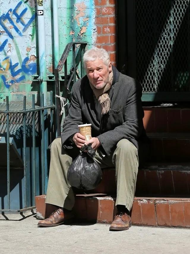 На улице Нью-Йорка к переодетому бедняком Гиру подошла французская туристка Карина Гомбо и вручила ему пакет с едой, приняв голливудского актера за настоящего бездомного.