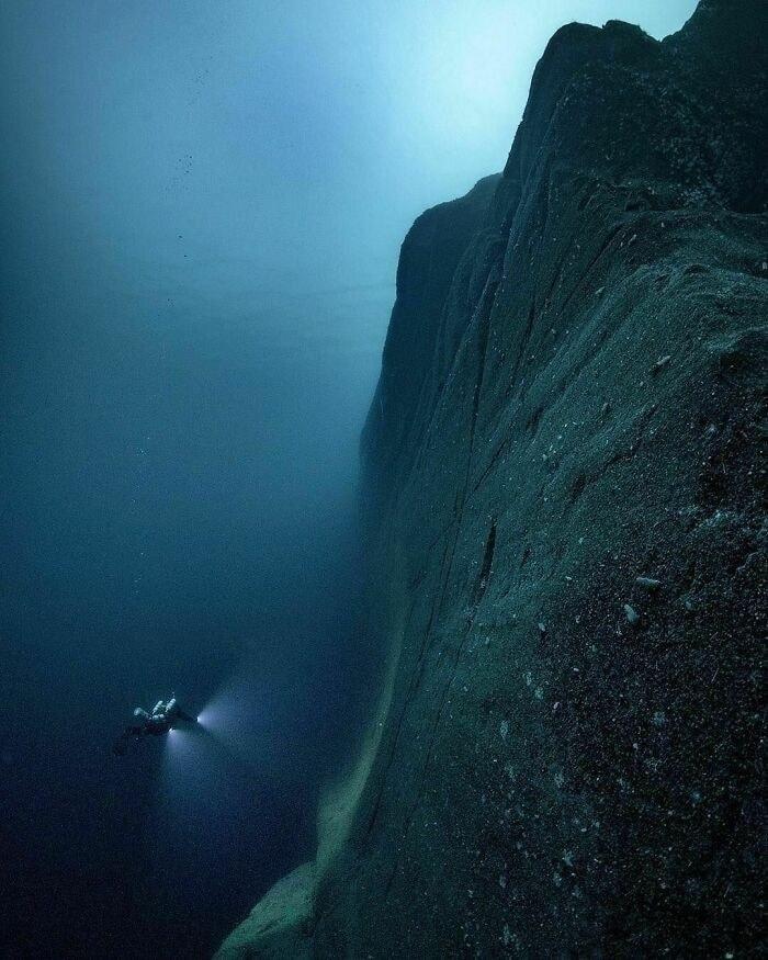 Самое глубокое человеческое погружение — всего 332 метра, и даже оно едва задевает верхний край этой зоны. Кашалоты, гиганты морей, опускаются гораздо глубже — на два километра в поисках легендарных кальмаров.