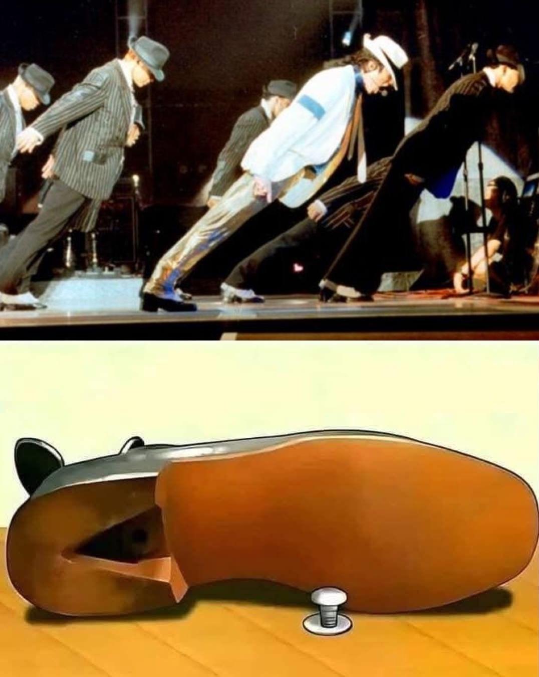 Секрет этого трюка был в специально разработанной обуви. На подошве был установлен механизм, крепившийся на болт, прикрепленный к полу, что позволяло артистам выполнять наклон, сохраняя баланс и создавая впечатление «невозможного» движения. Изобретение было запатентовано Джексоном в 1993 году.