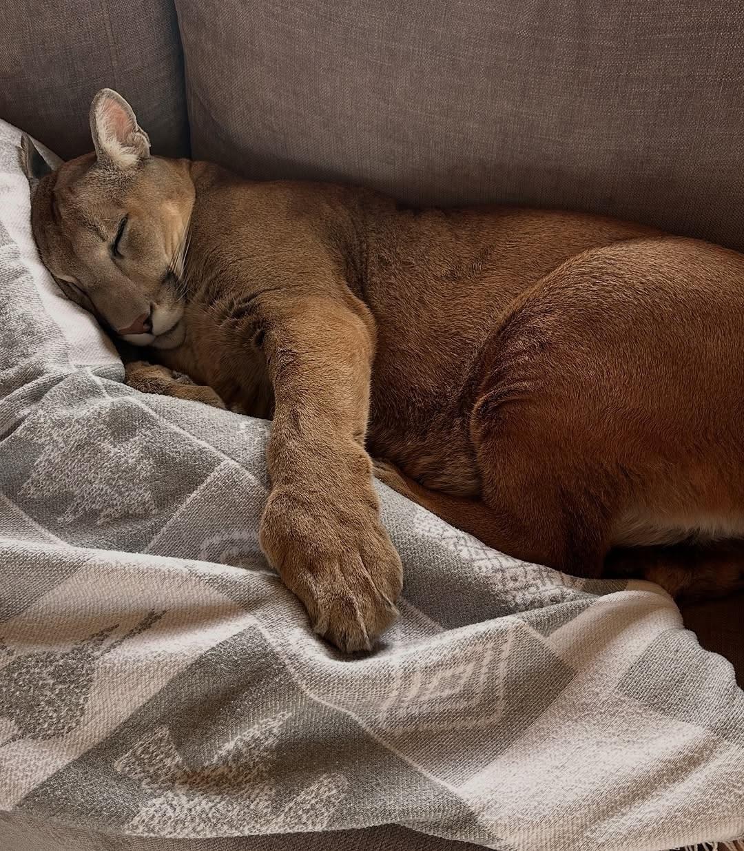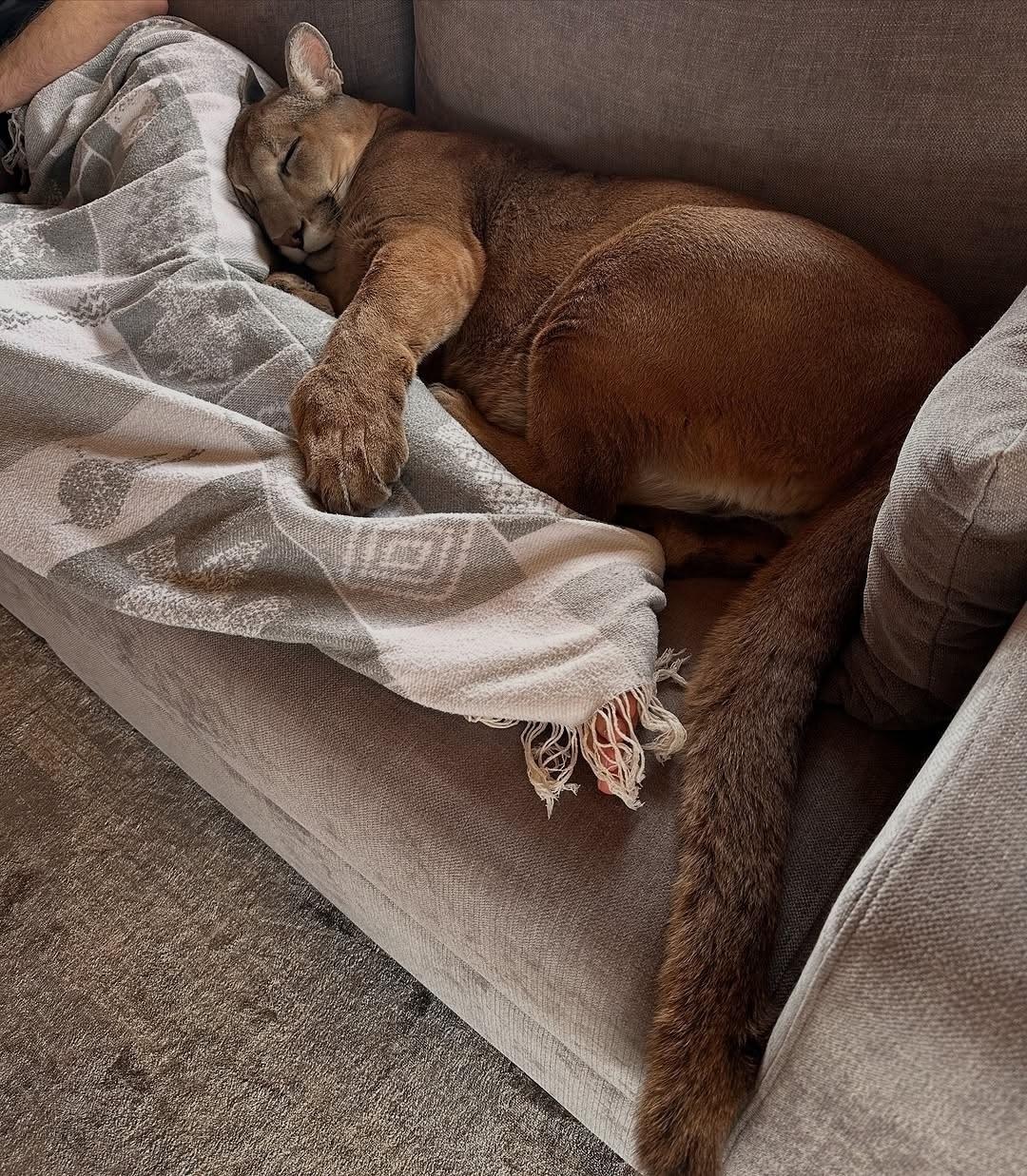 Ничего необычного, просто пума спит в ногах у своего любимого человека, как простой домашний кот