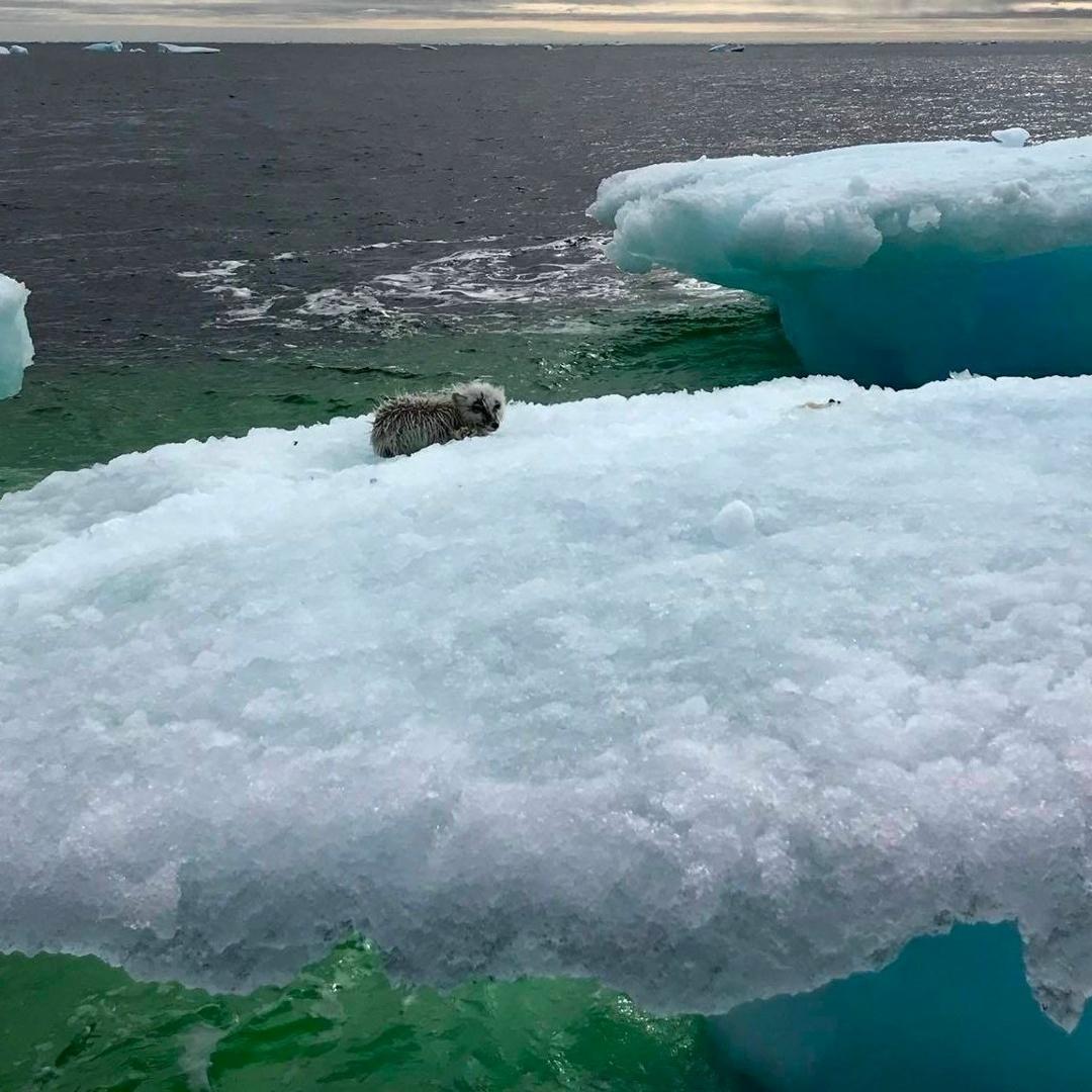 Полярную лисичку аккуратно спасли и доставили обратно на материк. Маленькая, растерянная — и такая хрупкая на фоне бескрайнего льда.