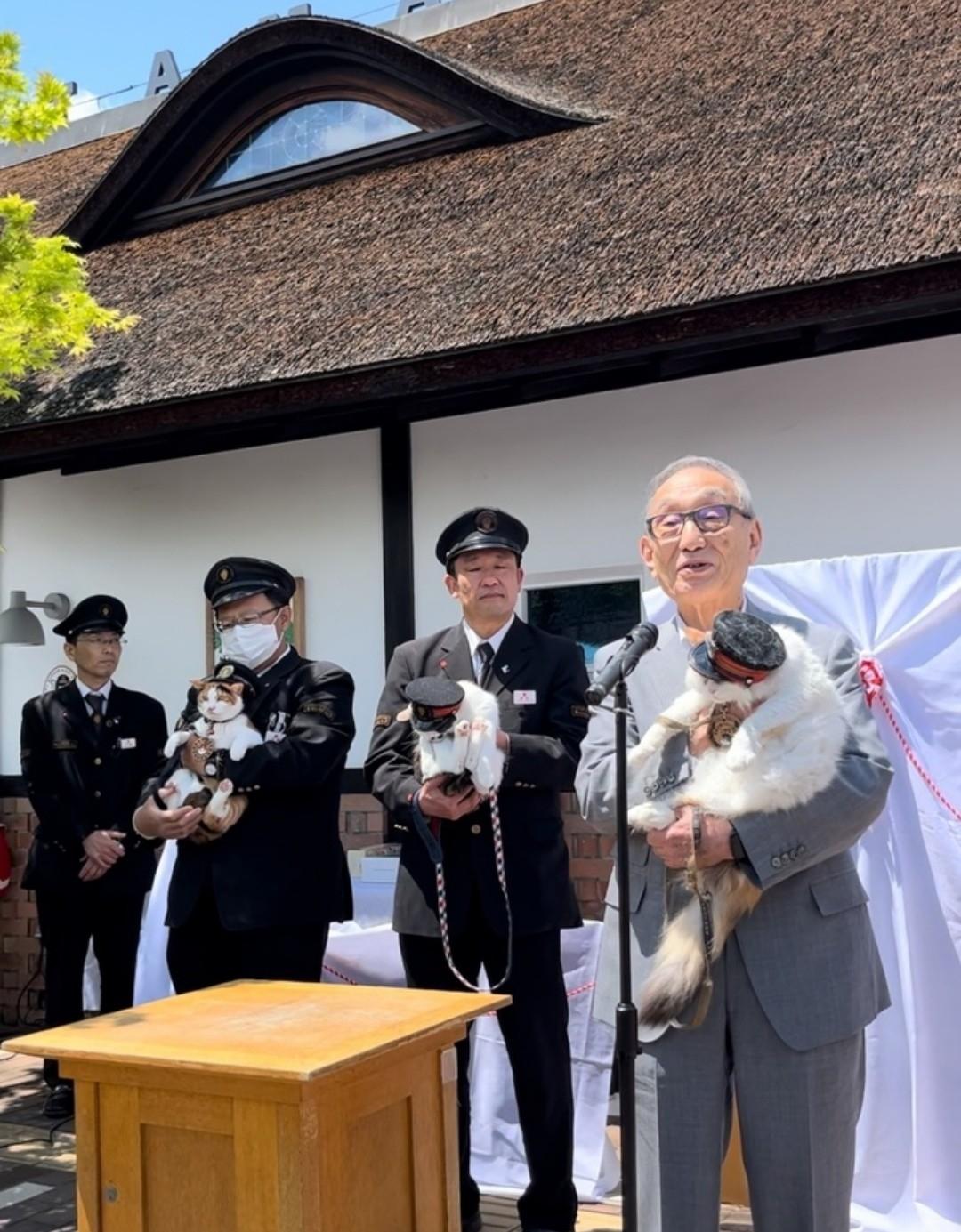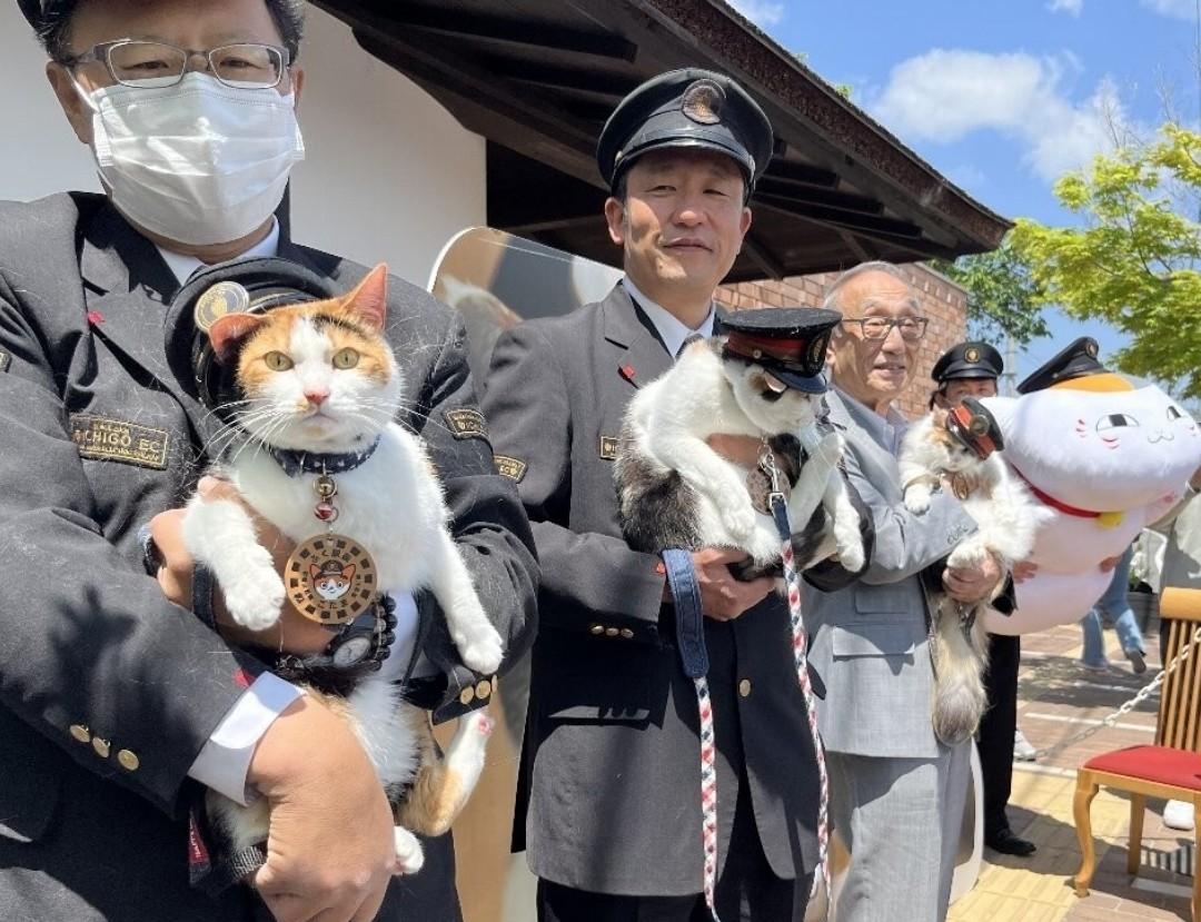 Летом 2025 года в Японии на железнодорожной станции Киси сразу три кота заступили на службу.