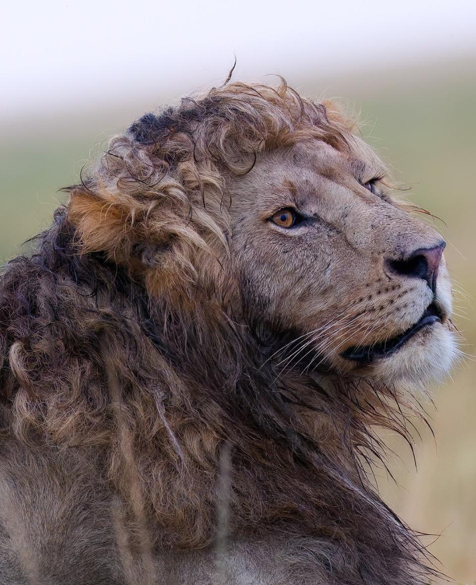 Фотограф дикой природы запечатлел льва с идеальной кудрявой гривой. Учёные считают, что такие локоны появились из-за сочетания генетики, влажности и того, что мокрая грива высохла на ветру, создавая эффект «свежей укладки».