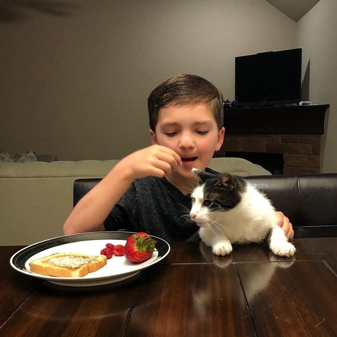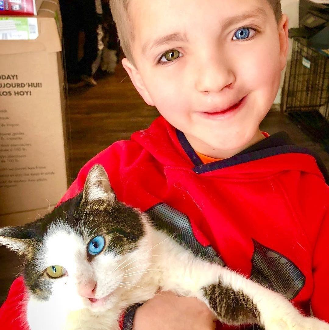В приюте в Миннесоте ждал своего человека кот по имени Мун — с точно такими же глазами и той же особенностью губы. Когда семья Мэддена узнала об этом, они проехали тысячи километров, чтобы забрать кота домой. С первой же встречи стало ясно — это была не просто дружба, а родство душ. Теперь Мэдден и Мун неразлучны. Они вместе доказывают, что быть другим — не недостаток, а дар.