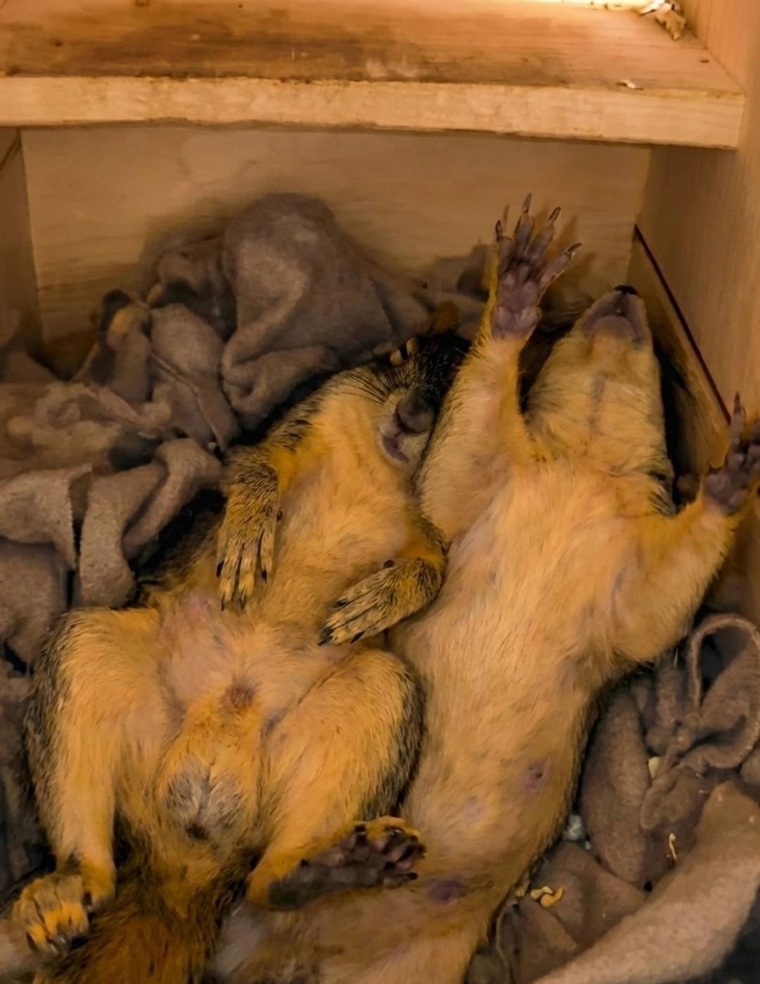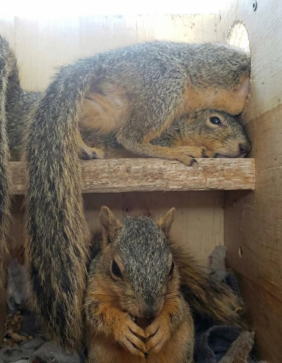 Не знаю, что вы ожидали сегодня увидеть в ленте, но вот — белки в своём домике, в те редкие моменты, когда никто на них не смотрит и можно просто быть собой.