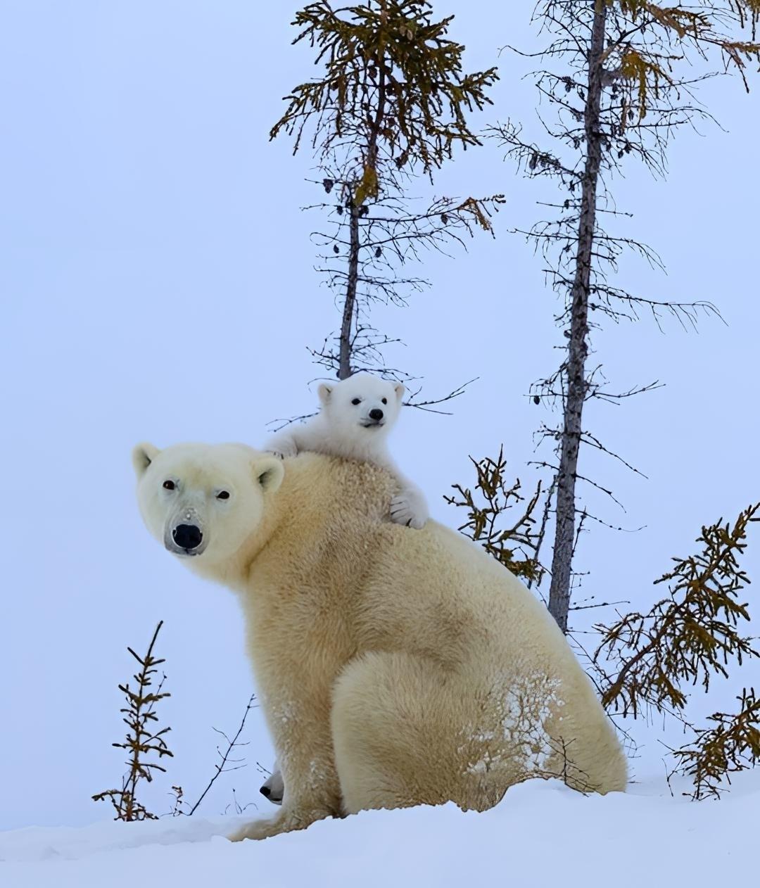Только взгляните, как белая медведица ведёт своих малышей через суровую арктическую тундру Вапуска
