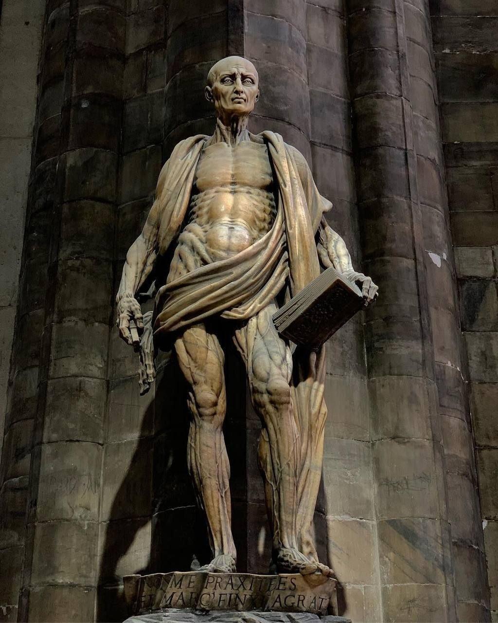 Посетители Миланского собора часто бывают шокированы натурализмом статуи Святого Варфоломея — одного из 12 учеников Христа.
