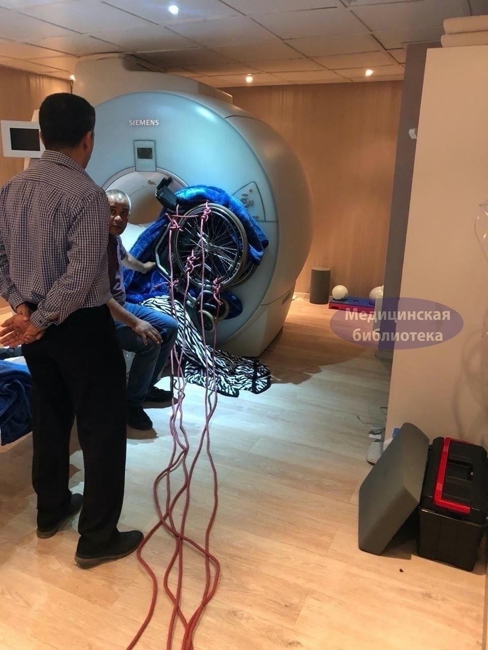 В кабинет МРТ по ошибке заехал мужчина на инвалидном кресле. В своем, а не специальном. В итоге понадобилось 5 веревок и 14 сотрудников больницы для того, чтобы отделить кресло от аппарата.