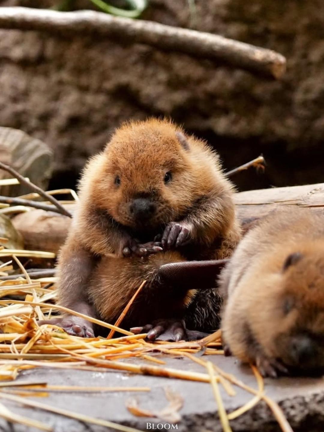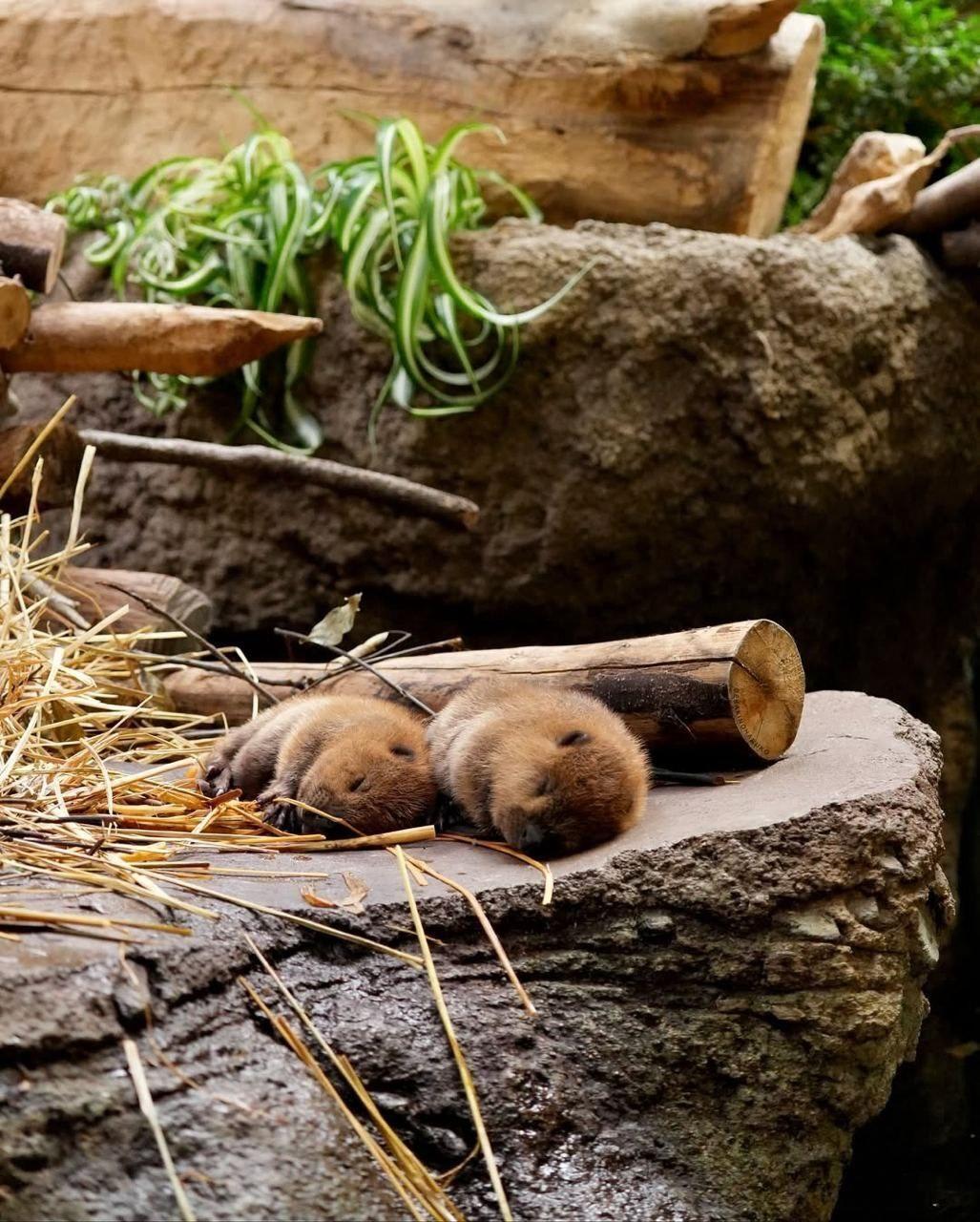 В японском зоопарке полгода назад родились бобрята — маленькие, круглые и с максимально сосредоточенными мордашками.