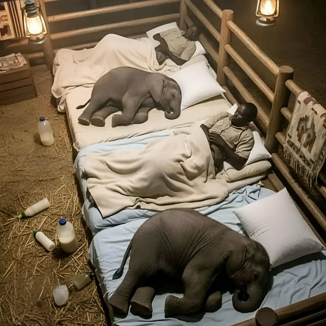 Первые дни — самые тяжёлые. Слонята тоскуют так сильно, что могут умереть от горя, отказываясь от еды и воды. Поэтому смотрители здесь — больше чем работники. Они становятся семьёй. Каждому малышу назначают личного няня, который кормит его из бутылочки, укрывает одеялом на ночь и спит рядом, согревая своим присутствием. Для этих невероятно социальных и чувствительных животных такое замещение материнской заботы — основа выживания.