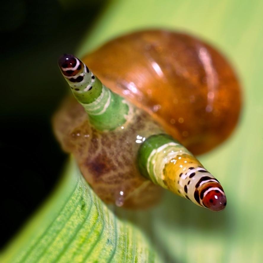 Они контролируют поведение улитки, заставляя ее находиться на видном месте. Ведь цель паразита – чтобы улитку съела птица. Когда улитка погибает, она продолжает сидеть на листике и «дергать» глазами.